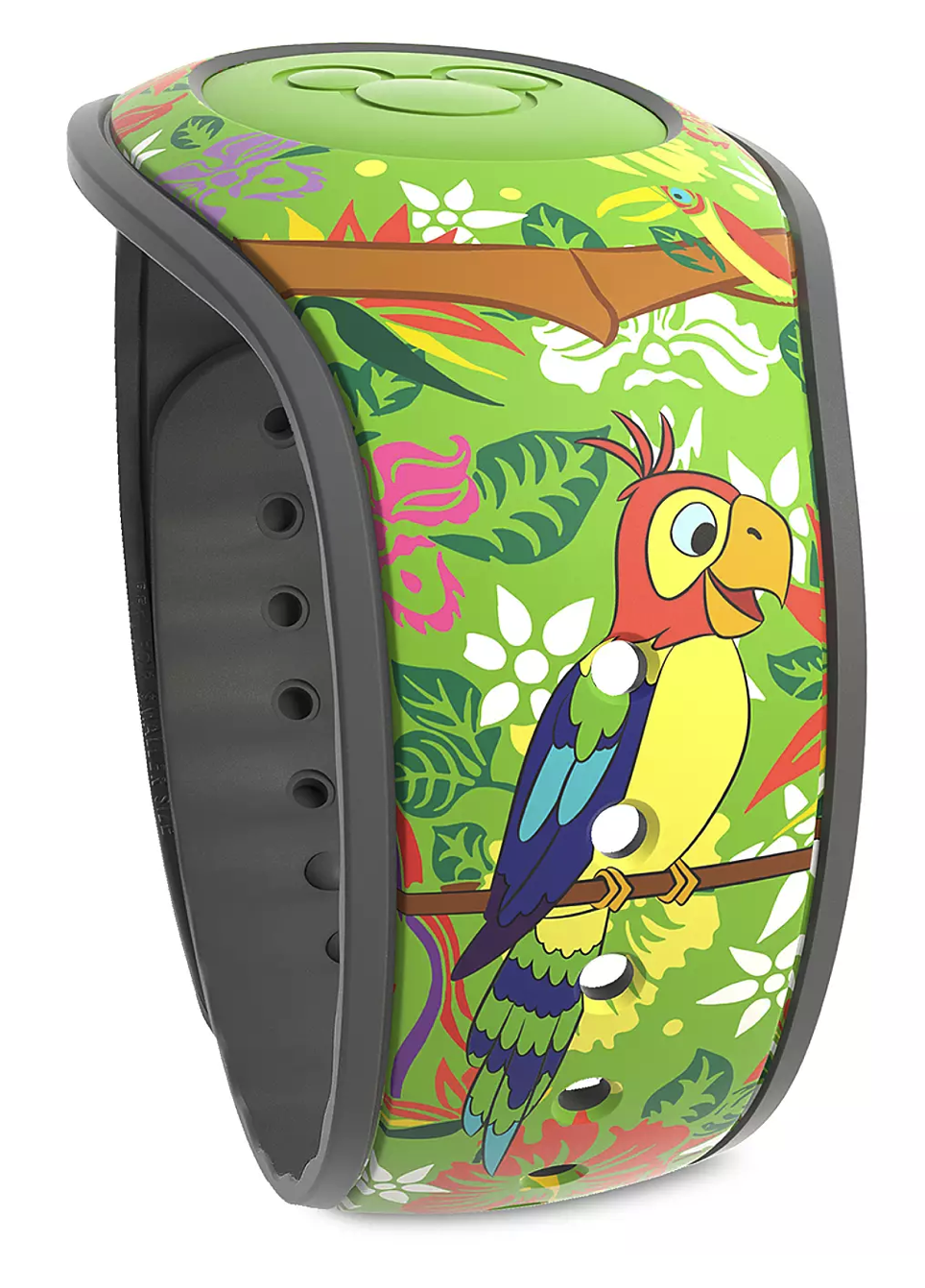 The long-delayed Minnie Mouse: The Main Attraction Limited Release Enchanted Tiki Room MagicBand has finally been released on shopDisney today. The band is #5 in the series of 12 total. This band is $34.99 and the barcode SKU is 400922563476.